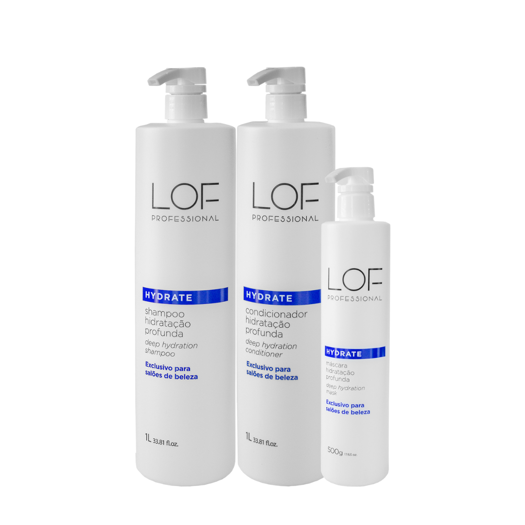The Hydrate line from LOF Professional has been developed for all hair types, especially for dry, dehydrated, lifeless, and dull hair. It is a line designed to restore the beauty of the hair, providing deep hydration and, at the same time, nourishment. The Hydrate line is rich in antioxidants, repairs the moisture of the hair, and combats free radicals.